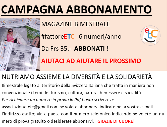 Se volete abbonarvi sappiate che per 6 numeri all’anno chiediamo una contro prestazione da frs 35.-.